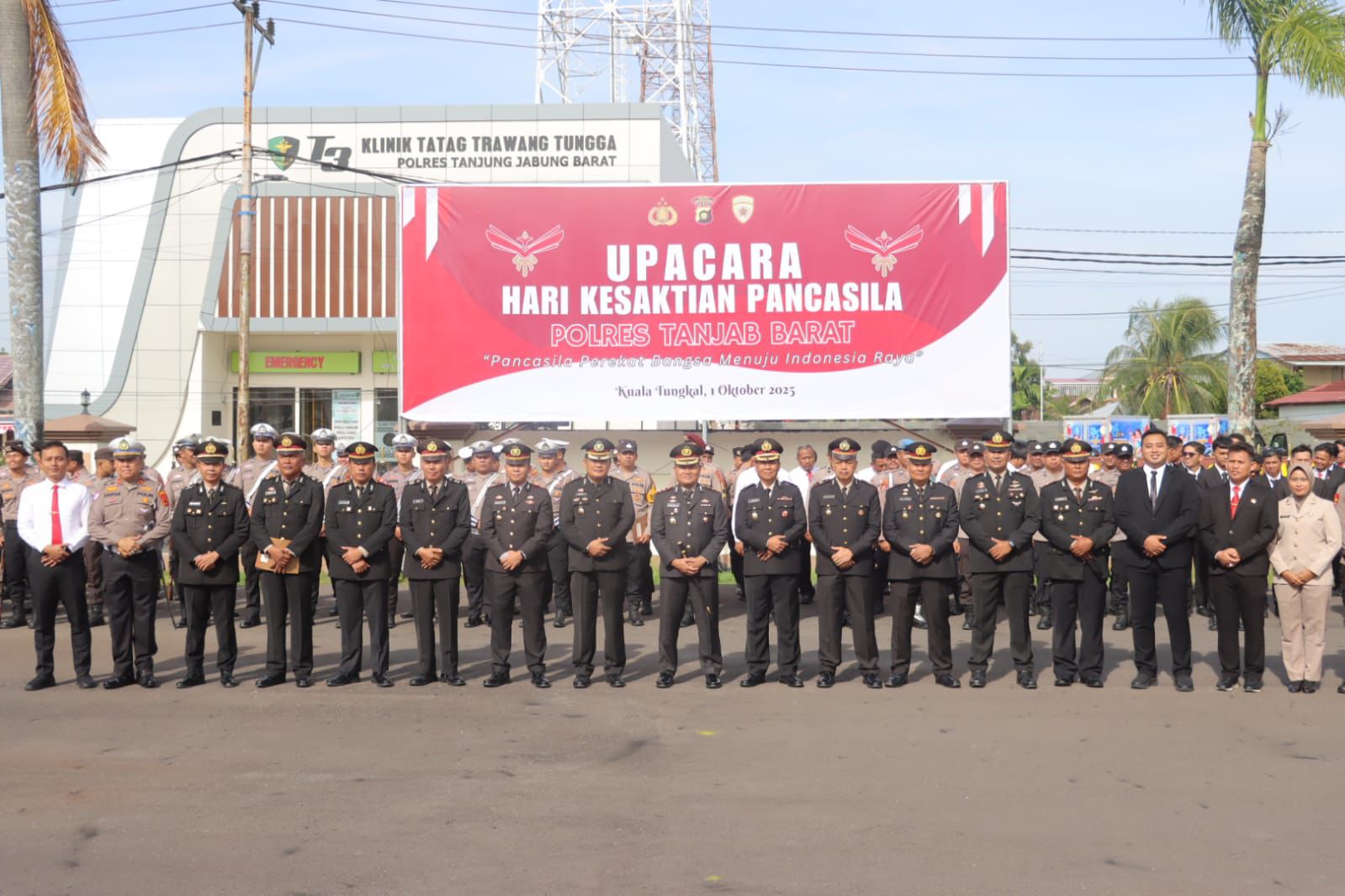 KUALA TUNGKAL (NN).– Kepolisian Resor (Polres) Tanjung Jabung Barat (Tanjab Barat) menggelar upacara peringatan Hari Kesaktian Pancasila pada Rabu (1/10/2025) di lapangan Mapolres Tanjab Barat. Upacara yang berlangsung khidmat ini dipimpin oleh Kapolres Tanjab Barat, AKBP Agung Basuki, S.I.K., M.M., dan diikuti oleh seluruh pejabat utama, perwira, bintara, serta aparatur sipil negara (ASN) Polres Tanjab Barat.